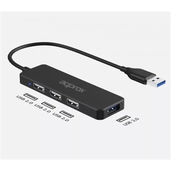 APPROX USB HUB - USB3.0 4in1 HUB (3db USB2.0, 1db USB3.0) Fekete