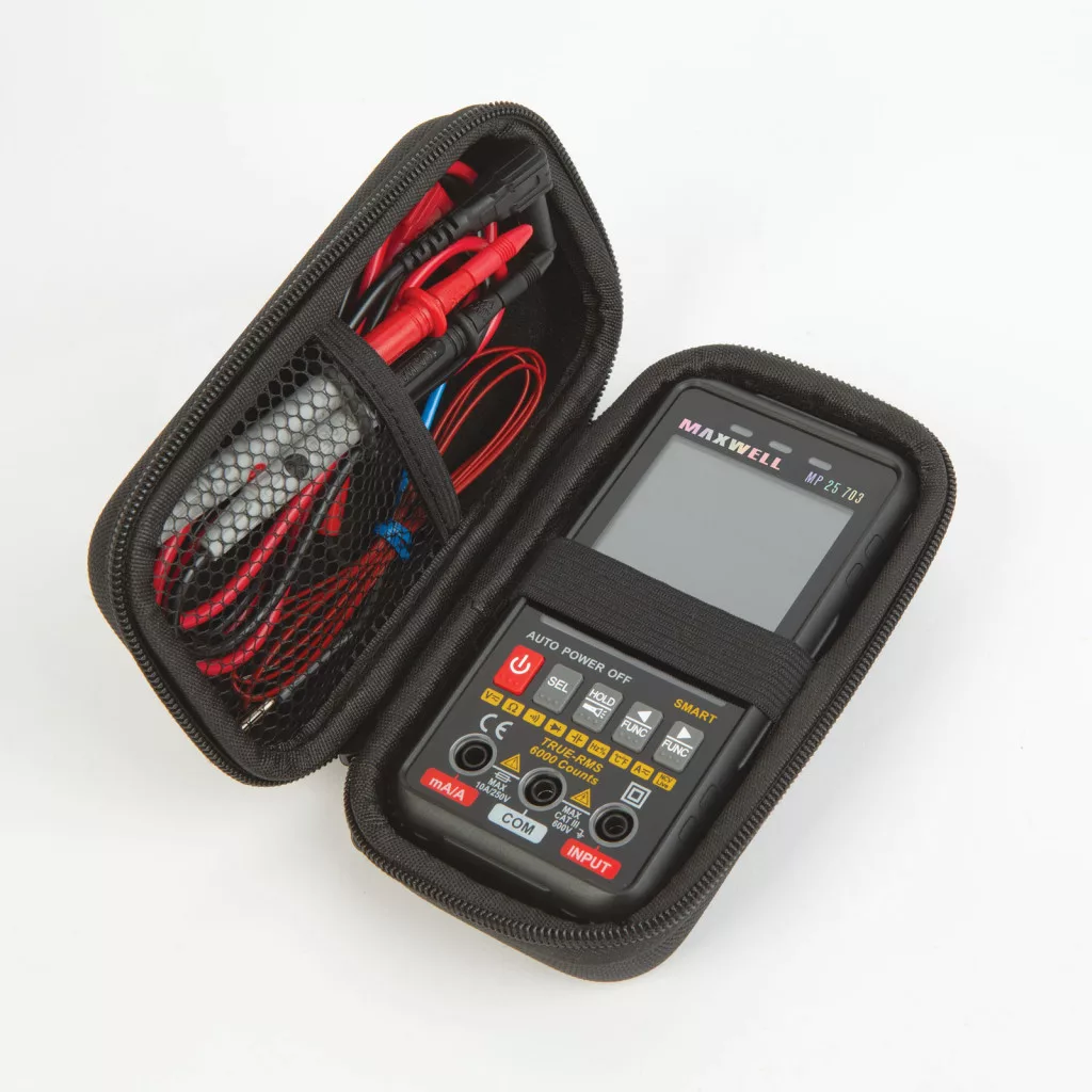 Nagyméretű, színes kijelzővel szerelt műszer, amelyről még napsütésben is könnyen leolvashatóak a mért értékek. A teljesen automata multiméter előnye, hogy a mérés során a készülék automatikusan felismeri melyik funkcióra van szükség és abban végzi el a mérést. Lehetősége van a kívánt funkciót kézzel is kiválasztani, ilyen esetben a csatlakozó körül világító LED fény segíti a mérőzsinórok helyes csatlakozását. A készülék hátoldalán található szenzor segítségével detektálhat feszültséget, anélkül, hogy megbontaná a kábelezést. A beépített munkalámpának köszönhetően szükség esetén megvilágíthatja a munkaterületet. Ergonomikus készülékház, kompakt méret és könnyű kezelhetőség jellemzi. A praktikus, keményfalú hordozótáska megvédi a terméket a szállítások alkalmával.