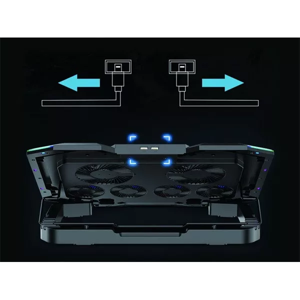 The cooling stand itself is USB powered and is equipped with 2 USB ports so it can work anywhere without the need for a power socket while offering the convenience of spare ports. A powerful support for gamers!