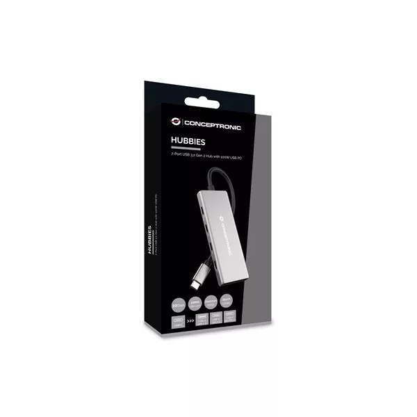 Conceptronic USB Hub - HUBBIES17G (4 Port, USB-C to 4x USB-C+3x USB-A, szürke)