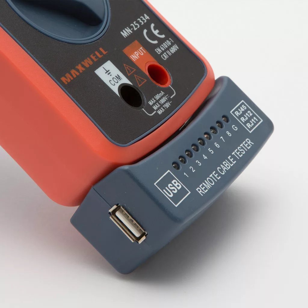 2 az 1-ben műszer, általános multiméter funkciókkal, kábeltesztelő egységgel kiegészítve. A kontroll egység levehető és szabadon hordozható. RJ11, RJ12, RJ45 és USB vezetékek teszteléséhez alkalmazható. Automata méréshatár váltás a még kényelmesebb használatért.
