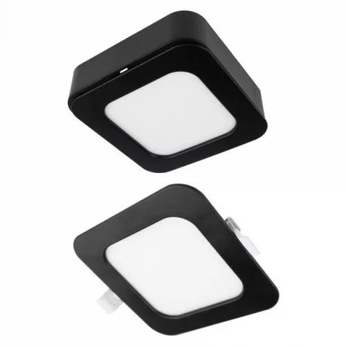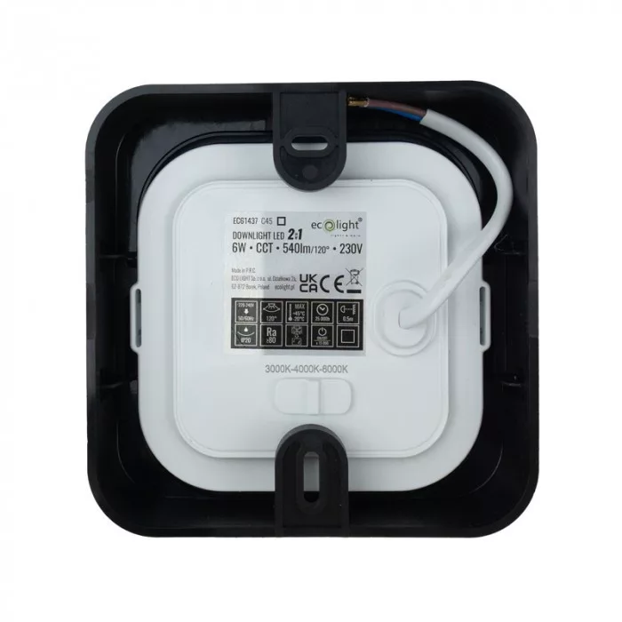 Ecolight 6W-os, négyzet alakú, CCT, fekete, süllyesztett és felületre szerelhető lámpa