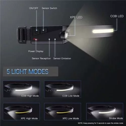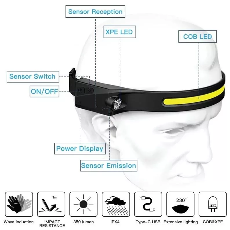 Ez a LED fejlámpa ideális választás szabadtéri tevékenységekhez, mint az éjszakai túrázás, kempingezés, hegymászás, horgászat vagy kerékpározás. Beépített akkumulátorral és USB-töltési lehetőséggel rendelkezik, valamint mozgásérzékelős kapcsolással biztosítja a kényelmes használatot.