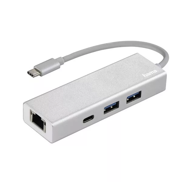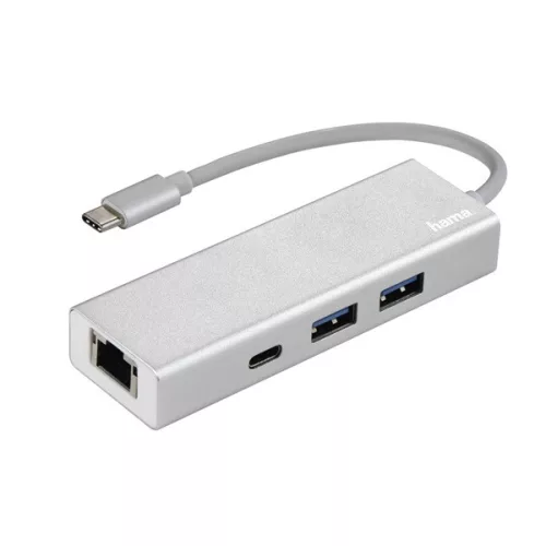 Hama USB HUB - 200108 (USB-C 4in1, 2xUSB 3.2, 1xUSB-C, 1xLAN, 100W PD, szürke)