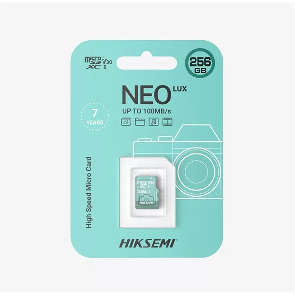Hikvision HIKSEMI MicroSD kártya - NEO LUX 256GB microSDXC™, Class 10 and UHS-I, 3D NAND (r/w: 100 / 70MB, V30)