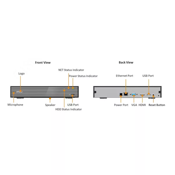 Imou NVR rögzítő - NVR-N110-8A0E (10 csatorna, H265, HDMI, VGA, USB, 1x Sata (max16TB), Onvif; Hangsz; Mikrofon)
