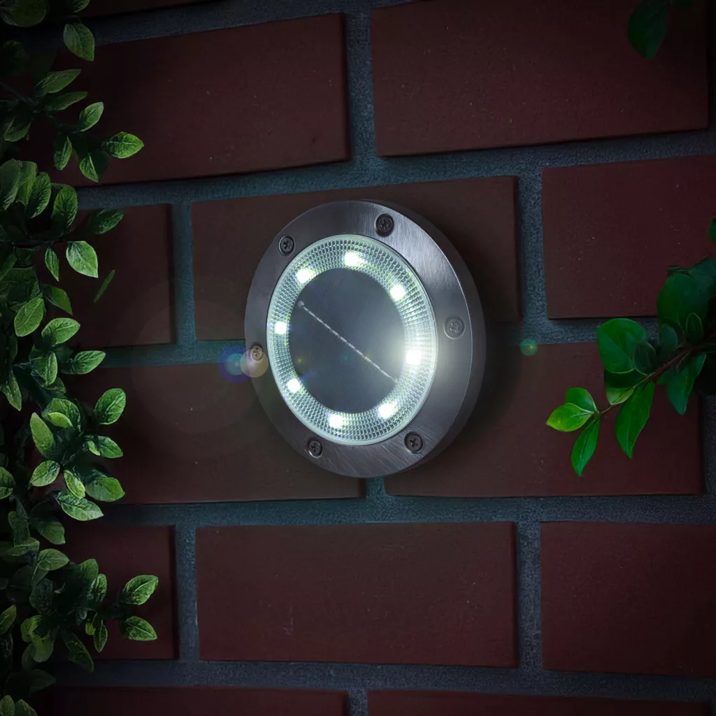 Modern és letisztult megjelenésű, kör alakú LED-es leszúrható, falra szerelhető szolár lámpa, amely kiváló megoldás járdák, kerti ösvények, virágágyások vagy homlokzatok megvilágítására. A hidegfehér fényű, nagy fényerejű LED-ek tiszta, erőteljes fényt biztosítanak, így nemcsak díszítésre, hanem funkcionális világításra is alkalmas. A szolárpanel hatékonyan gyűjti a napenergiát, amit a nagy kapacitású akkumulátor tárol, és akár 6–8 órányi működést is lehetővé tesz teljes feltöltés után. A fém ház strapabíró, időjárásálló kivitelben készült. A szett 2 darab lámpát tartalmaz.