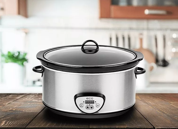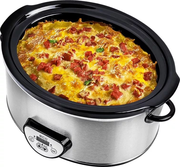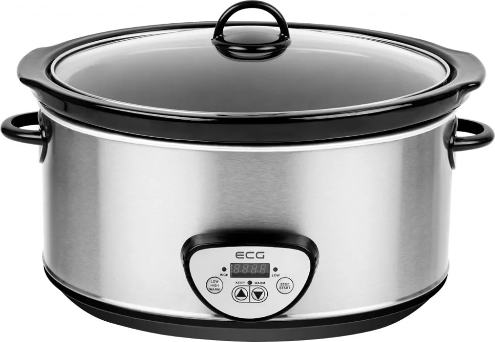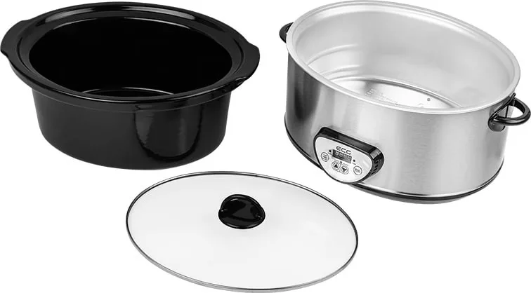 Lassú főző edény, teljes térfogata 6,5 liter, maximum 7 adag étel készítésére. Az ECG PH 6520 cserélhető kerámiaedényt tartalmaz az összes alkotóelem egyenletes melegítéséhez. Amikor a főzési mód befejeződött, automatikusan átkapcsol hőmegtartó üzemmódba.
