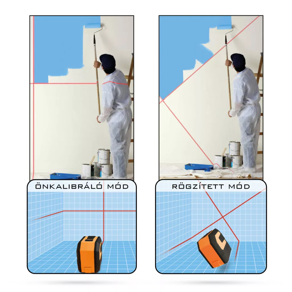• Normál és fix lézerkereszt üzemmód
