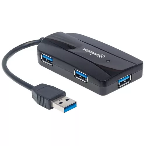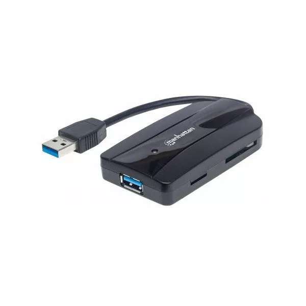 Manhattan USB HUB - USB 3.0-ról 3db USB 3.0-ra, SD, MicroSD kártyaolvasó slot, Fekete