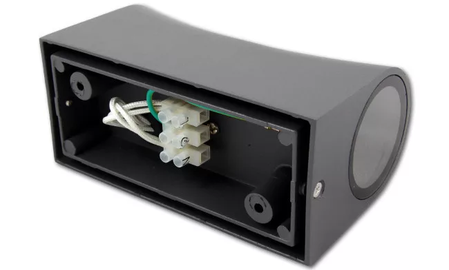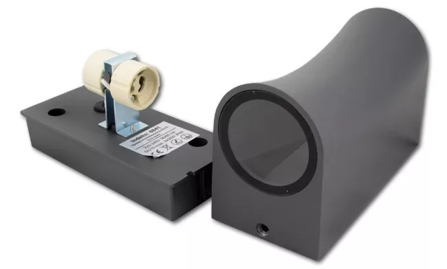 MasterLED Dora oldalfalra helyezhető szürke matt kültéri lámpatest ívelt oldalú két irányba világító cserélhető fényforrással