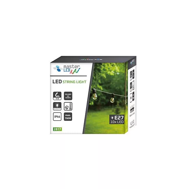MasterLED Girlanda LED 10 m hosszúrságú 10x E27-es foglalatot tartalmazó sorolható fényfüzér