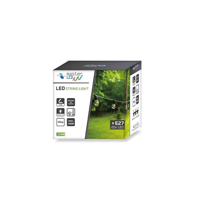 MasterLED Girlanda LED 20 m hosszúrságú 20x E27-es foglalatot tartalmazó sorolható fényfüzér