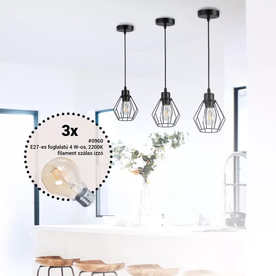 MasterLED Otto 3xE27-es foglalatú mennyezeti lámpa 3 db filamentszálas izzóval
