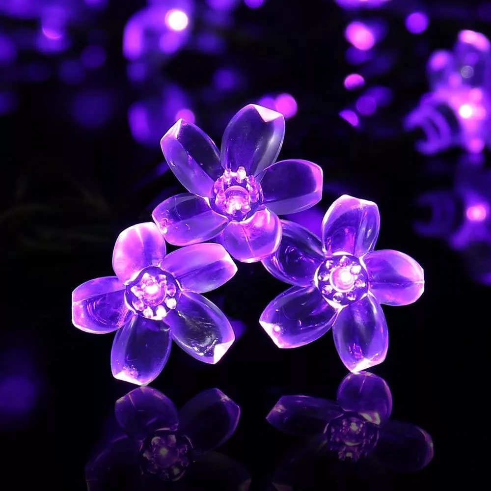 Napelemes fényfüzér, 50 LED, cseresznyefa virág design, lila Sakura, 5m, kültéri
