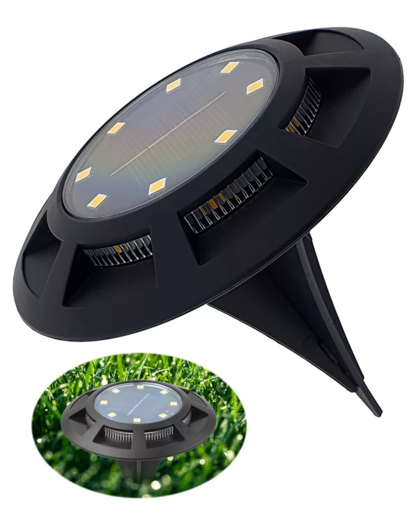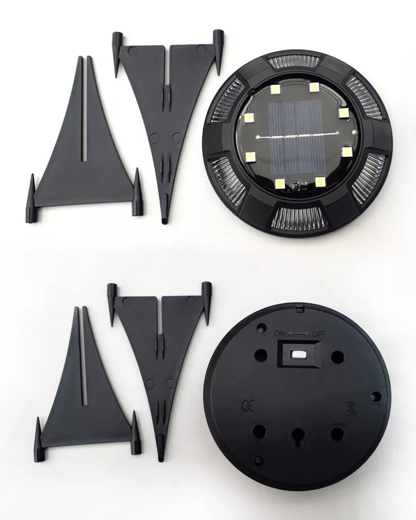 Napelemes kerti lámpa - alkalmas kert, pázsit, családi ház járdájának megvilágítására, kültéri lépcsőház megvilágítására stb. Előnye, hogy ellenáll a kis átmérőjű idegen testek (por) behatolásának >1 mm, vízsugár IP44 védettséggel. Kiválaszthatja, hogy szabadon szeretné-e elhelyezni a lámpát, vagy rögzíteni kívánja a földbe egy csaptalppal (a csomag tartalmazza). Az első használat előtt helyezze a hátoldalon lévő gombot ON állásba. A töltés után a lámpa éjszaka automatikusan felkapcsol, nappal pedig kialszik. Fontos, hogy a napelemet egész nap közvetlen napfény érje, ne irányítsa a panelt épületek, fák vagy egyéb akadályok felé.