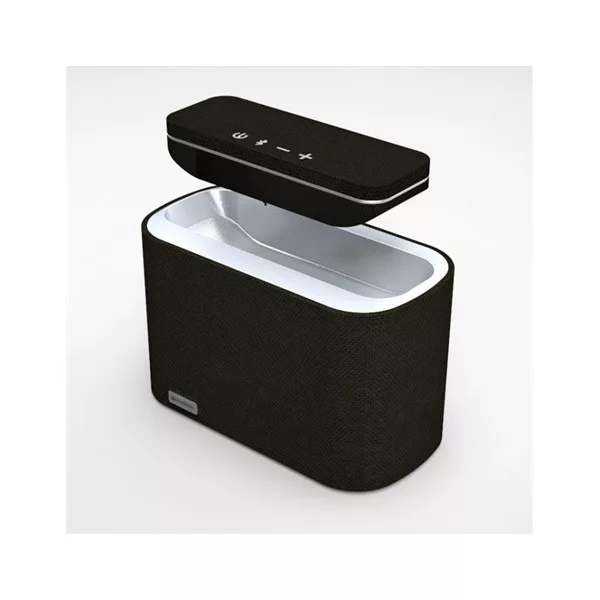 PLATINET DUO-ban valójában két eszköz található kombinálva egy multifunkcionális berendezésbe. A bázis itt egy hangszóró, amely teljesen függetlenül működhet.Ezt bármikor behelyezheti a dokkoló állomásba, amely egyben a mélynyomó, és a teljesítménye 20 W.