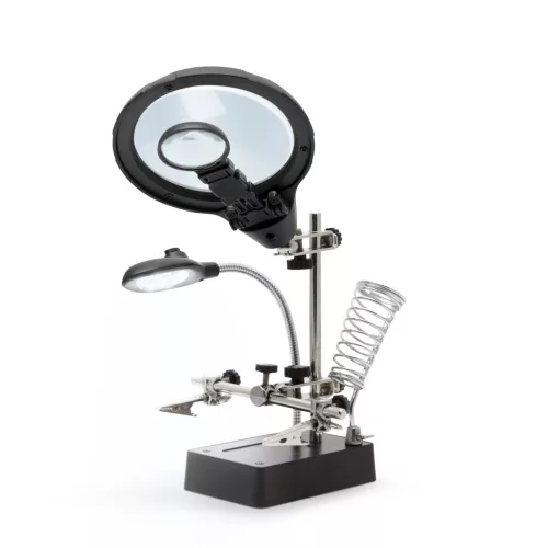 Rendkívül jól használható forrasztás-technikában, elektronikában, modellezéshez, illetve otthoni barkácsoláshoz. Segítségével az apróbb tárgyak, panelek könnyedén rögzíthetőek ezáltal szabadon hagyva mindkét kezünket. A tartókarok minden pontja 360°-ban mozdítható és rögzíthető. A talp masszív alapot, az erős krokodilcsipeszek pedig stabil tartást biztosítanak a munkadarabnak, melyen a többszörös nagyítású torzításmentes üveglencsés nagyító segítségével a legaprólékosabb műveletek is elvégezhetőek.