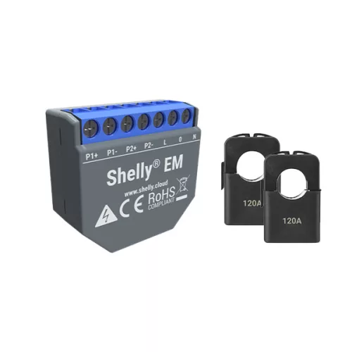 A Shelly 120A-es, vezetékre húzható áramváltója a Shelly EM egyfázisú fogyasztásmérő külön rendelhető kiegészítője.