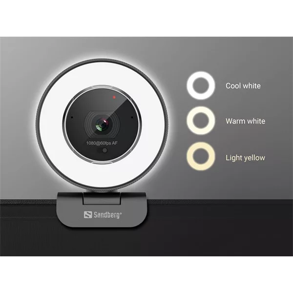 A Sandberg Streamer USB Webcam Pro Elite a tökéletes webkamera streameléshez, játékokhoz vagy akár csak online beszélgetéshez a barátokkal. A full HD 1080P felbontás, szuper éles képek 30 FPS-en, vagy full 60 FPS-en 1080P felbontás. A kamera olyan extra funkciókat is kínál, mint az autófókusz és az automatikus fénykorrekció. Maga a kamera olyan fénykör közepén helyezkedik el, érintéssel vezérelhetők. A kamerába beépített zajcsökkentő sztereó mikrofon optimális hangvisszaadást tesz lehetővé.