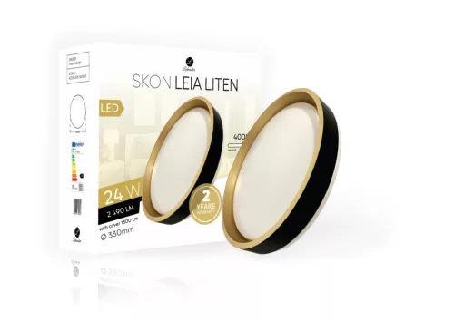 Skön Leia Liten 24 W-os ø330 mm kerek natúr fehér fekete-arany színű mennyezeti lámpa IP20-as védettségű