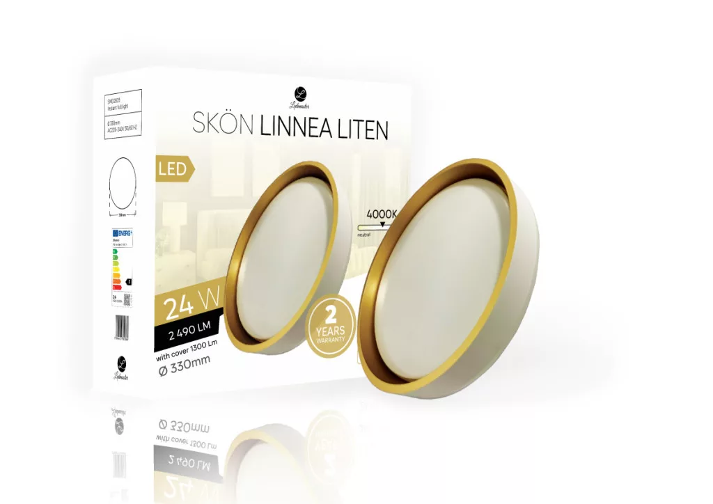 Skön Linnea Liten 24 W-os ø330 mm kerek natúr fehér fehér-arany színű mennyezeti lámpa IP20-as védettségű