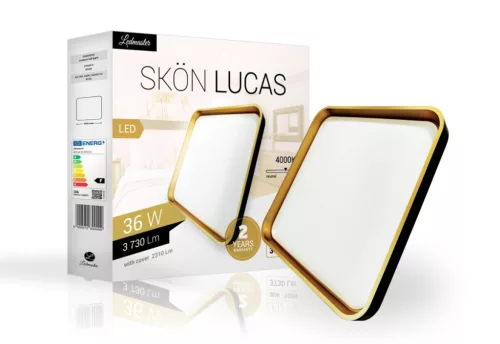 Skön Lucas 36 W-os ø500 mm négyzet alakú natúr fehér fekete-arany színű mennyezeti lámpa IP20-as védettségű