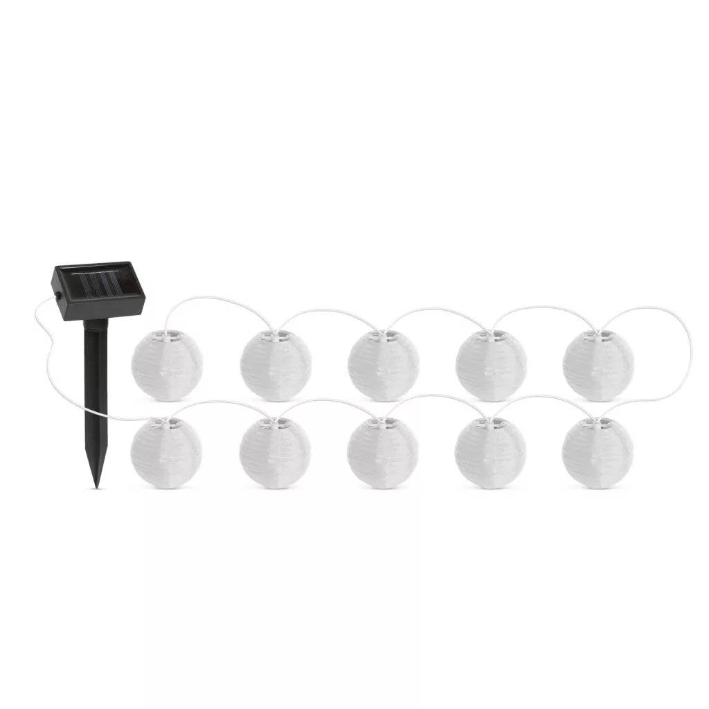 Szolár lampion fényfüzér - 10 db fehér lampion, hidegfehér LED - 2,5 m