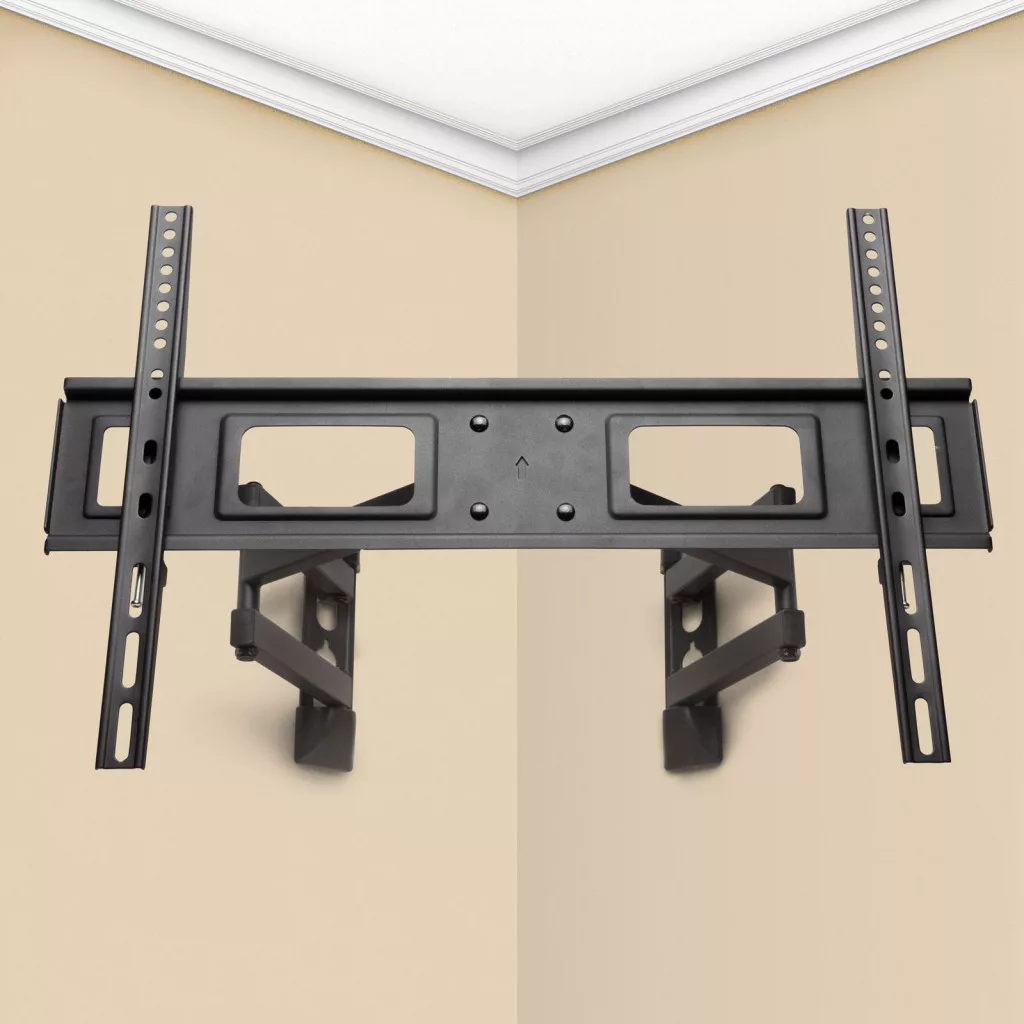 Fali tartókonzol TV-k, monitorok és egyéb VESA konzol kompatibilis eszközök rögzítéséhez. A szétnyitható tartókaroknak köszönhetően a sarkot vagy faltörést alkotó két falra is rögzíthető, legyen az belső vagy akár külső sarok. A TV a sarokban történő rögzítést követően is forgatható, dönthető marad. A masszív, erős tartás és a speciális helyekre történő rögzíthetőség érdekében dupla karral ellátott.