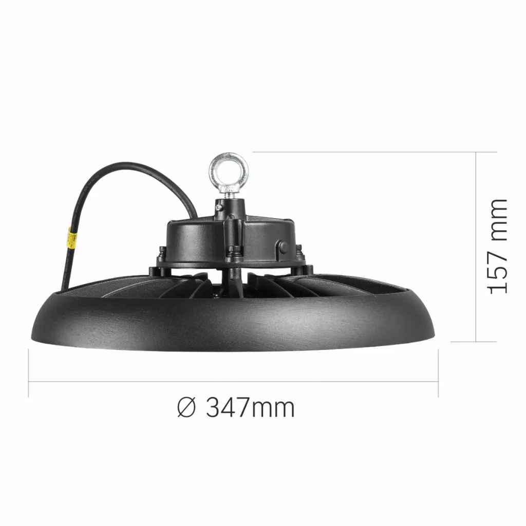 A VIDEX HB01 LED öböllámpa High Bay 200W 36000Lm 5000K (VL-HB01-2005B) egy nagy teljesítményű ipari típusú lámpa. A VIDEX lámpát a hagyományos világítás helyettesítésére használják különféle raktárakban és gyártóüzemekben, valamint ipari világítási rendszerekben, ahol folyamatos világításra van szükség a nap 24 órájában, a hét minden napján (nem alkalmas lakossági helyiségekben való használatra). A termék könnyű és tartós alumínium házzal van felszerelve. A lámpát egy rögzítőgyűrű segítségével, lehetőleg egy kampóra akasztva, fix tartókra rögzítve kell rögzíteni. Hosszabb használat során a termék nagyon felforrósodhat, de nem melegszik túl, és a lámpája hosszú ideig képes egyenletes, erős fényt produkálni villódzás nélkül. Méretei mindössze 347x157 mm .