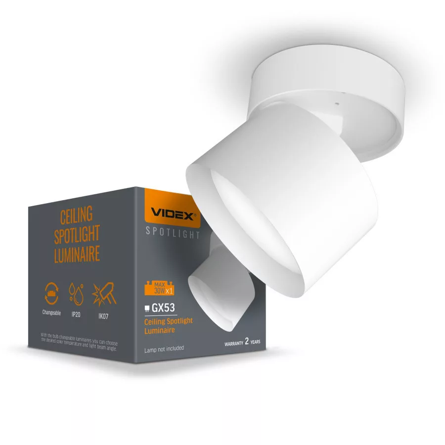 Videx fehér állítható mennyezeti lámpa keret GX53-as foglalattal