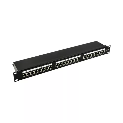 Walisec patch panel - PP-P6S2401 (24 port, Cat6, 1U, árnyékolt, fekete)