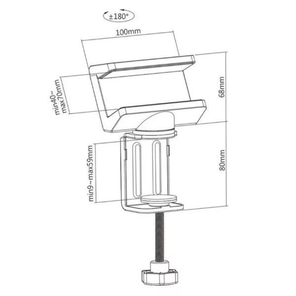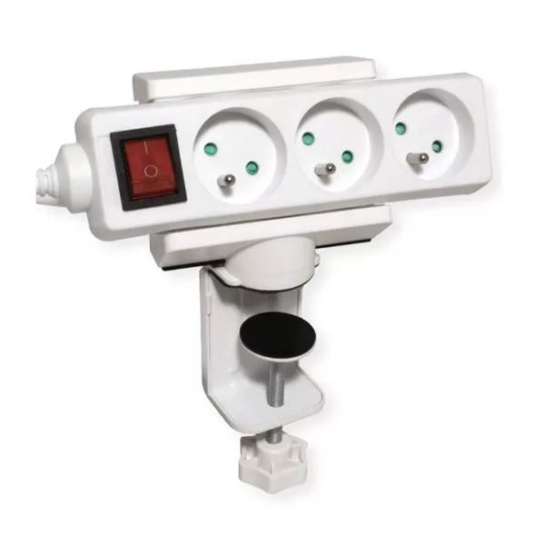VALUE Szorító hálózati elosztó asztali tartó, asztalra szorítható, 360°-ban elforgatható vízszintes, fehér